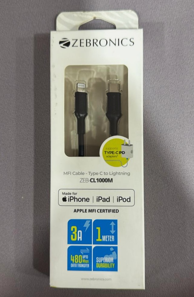 Whether at home, work, or on-the-go, Zebronics Type-C to Lightning Cable delivers reliable performance every time.
